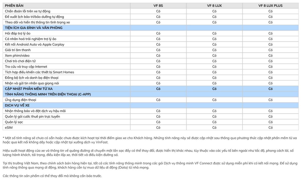 Ứng dụng VinFast: Với ứng dụng VinFast, Khách hàng kiểm tra tình trạng của các trạm sạc, xem dữ liệu về xe, đặt lịch bảo dưỡng, trợ giúp. Quan trọng hơn, ứng dụng VinFast giúp điều khiển xe, bật điều hòa từ xa để bạn luôn thoải mái ngay từ khi bước lên xe.