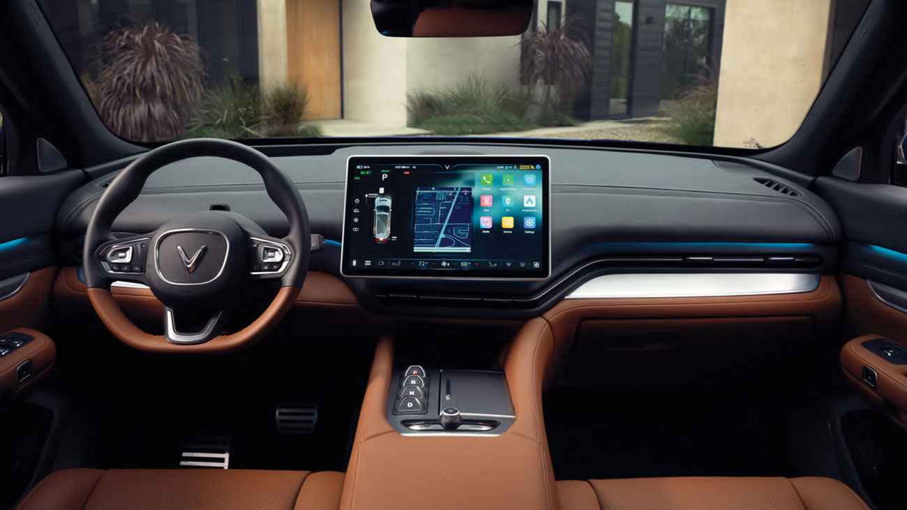 Ngôn ngữ thiết kế tối giản mang hơi hướng tương lai phối hợp cùng loạt vật liệu cao cấp, thân thiện với môi trường, VF 9 đem lại trải nghiệm nội thất khoáng đạt, thư thái trên mọi hành trình.