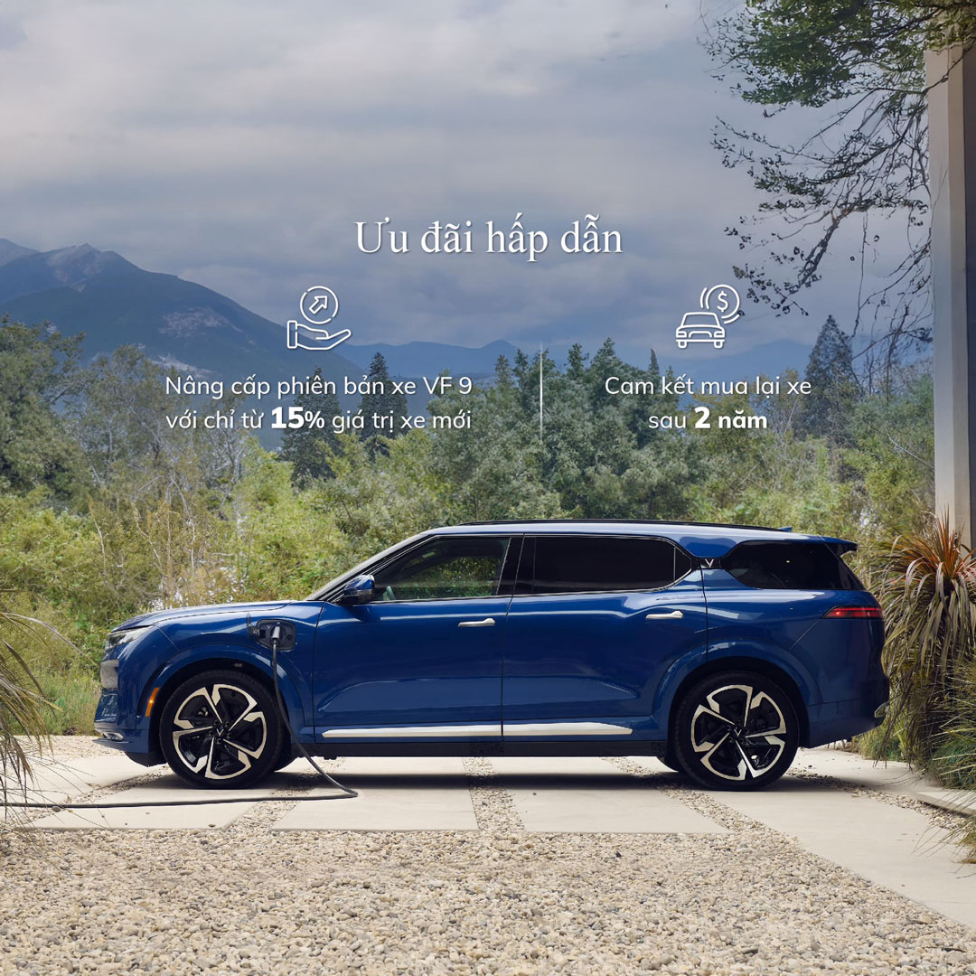 - VinFast cam kết đồng hành hỗ trợ Khách hàng nâng cấp từ xe VF 9 cũ lên VF 9 mới trong suốt vòng đời xe.